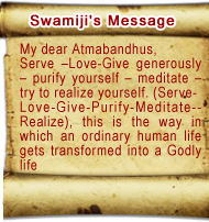 Swami did his education and was employed in a Government Department till He was ordered by the Lord Himself, to get relieved from the usual course of worldly life and fully dedicate to the Service of the Society.