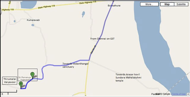Situated on the way to Vedanthangal From Chenlgelpet. On the GST (Chennai – Trichy , NH45) road towards Madurantakam, 15 minutes past Chengalpet, we appraoch the Cross roads of Padalam. On this junction, on right side which as directed by the sign Boards, it leads to Vedanthangal.